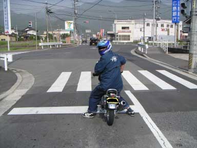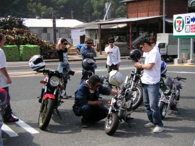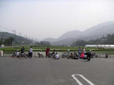 - ここで「RUSH50S'」さんと合流できました。 RUSHさんは早く現地入りしてたらしく、 ちょっと離れたところで焼肉してたそうです。 んで写真は合流して一緒に帰ることになったんですが、 道が工事中だったのでUターンしてるところです