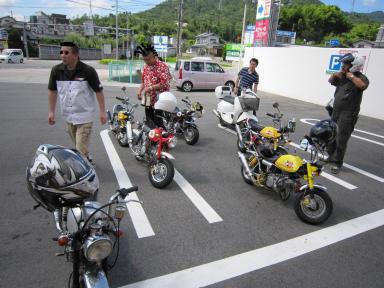 - ここは西条の工具・ツナギなどを販売している 「ファクトリーギア」というショップですが、 今回新しくツーリング用のツナギを作ることになったので、 みんなサイズ合わせのために立ち寄りしました
