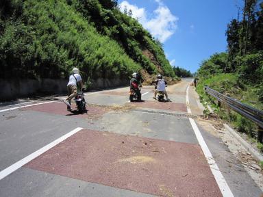 - それで石や木が道路に散乱している中を、 登っていったのですが、 最後にコレです!! ムムム・・・ さすがにコレは無理だと判断して、 急遽Uターンです