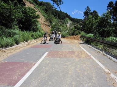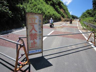 - 西日本は、 つい最近まで梅雨の豪雨が激しかったので、 雨で崩れたようです。 立ち入り禁止とありましたが、 「どうせ目の前にあるがけ崩れ程度なら、 行けるんじゃないかと・・・」 強引に突き進みました