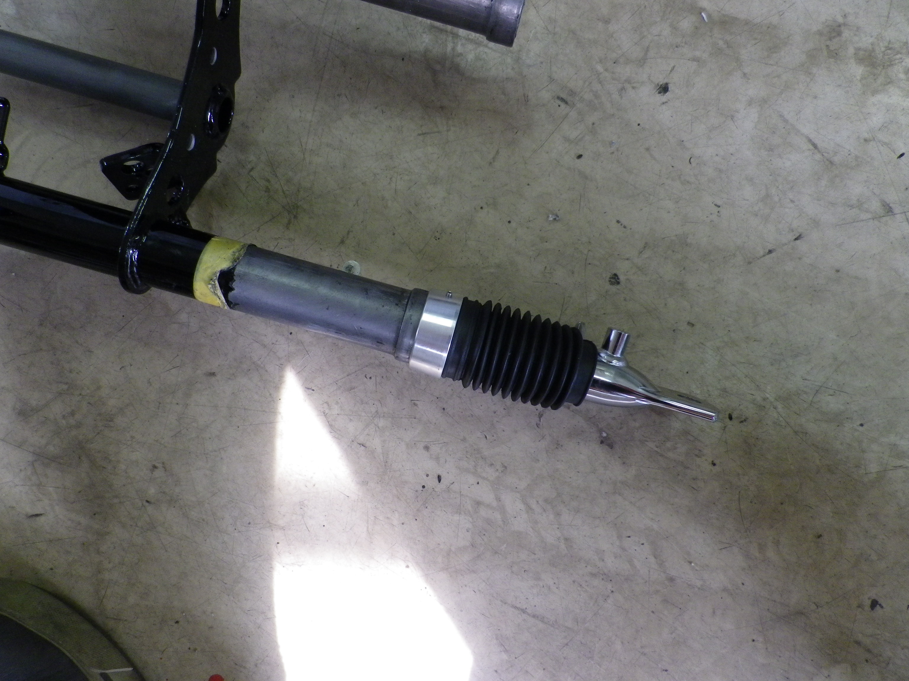 - ノーマルのままでは写真のようにゴムブーツが潰れてしまいます