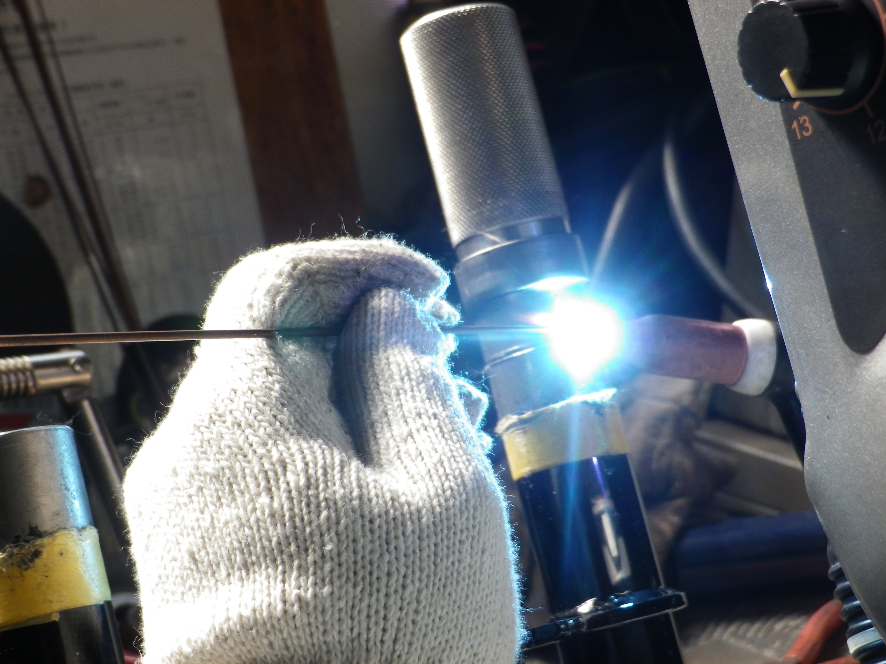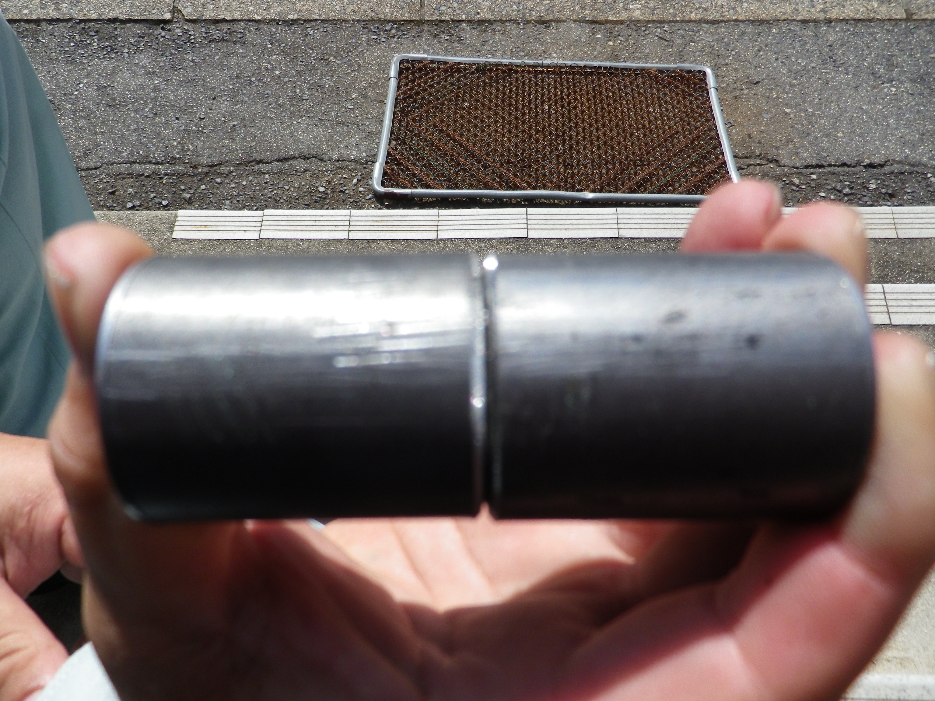 - 捨てる筒の部分で溶接の電圧調整します